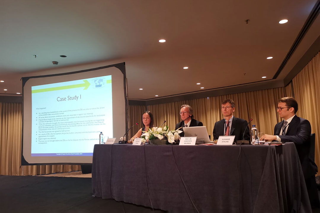 Prof. Dr. H. Ercüment Erdem’in yönettiği son oturumda ise uyuşmazlık çözümü aşamasında uygulamacıların sözleşmeyi olduğu gibi uygulamak ve uyarlamak seçenekleri arasından hangisine daha yakın durdukları tartışma konusu yapılmıştır. Bu kapsamda Av. Yasemin Çetinel uyuşmazlık (önleme ve) çözüm kurullarında, Prof. Dr. Christoph Brunner ise hakem heyetlerinde beklenmeyen hale ilişkin uygulamalardan bahsetmiştir. Son olarak Av. Alexander Schilling sektörün eleştirel bakış açısını bir uygulamacı olarak katılımcılara aktarmıştır.